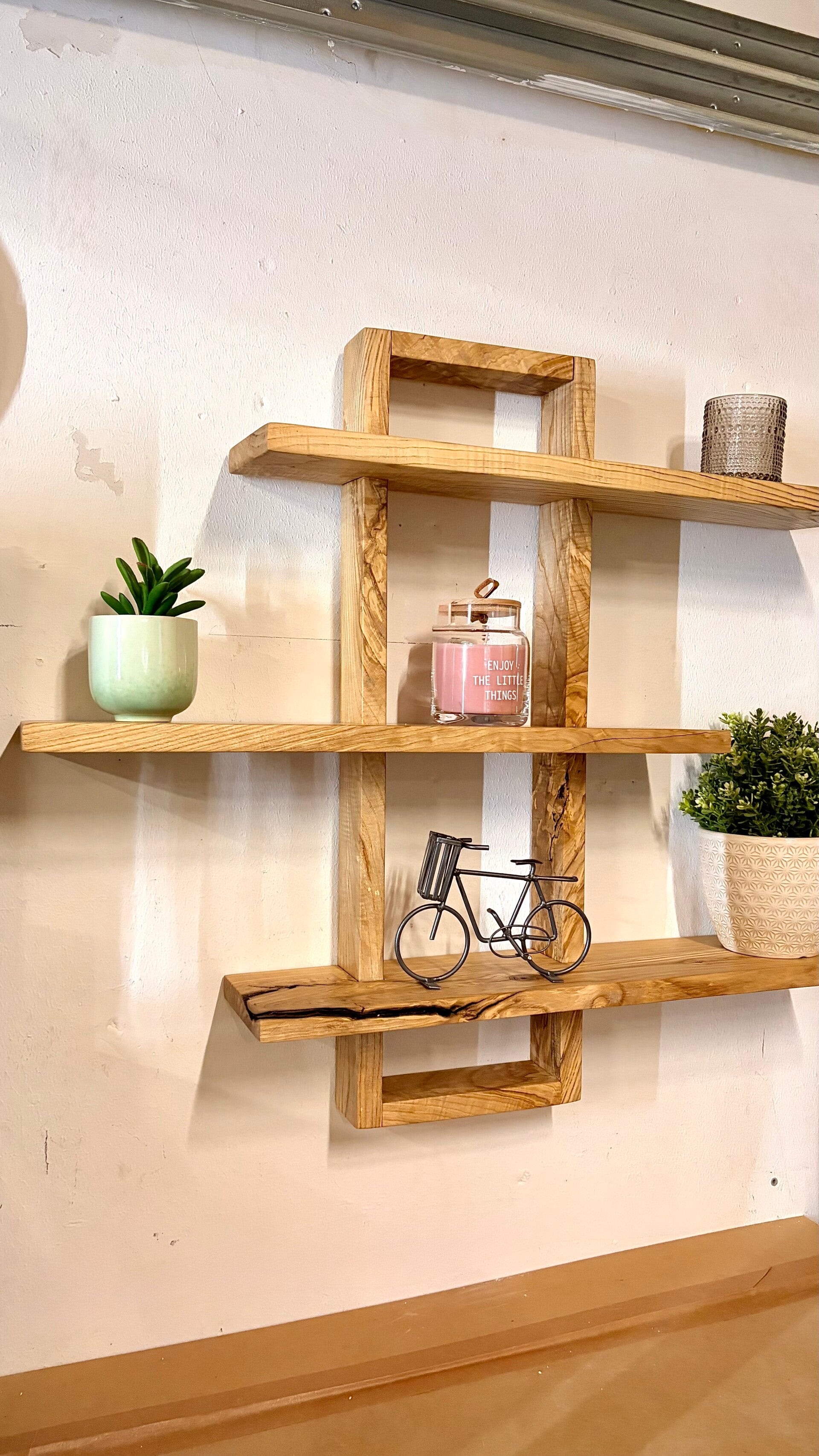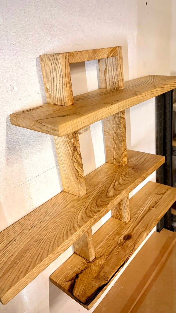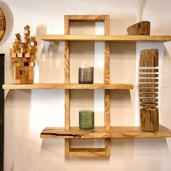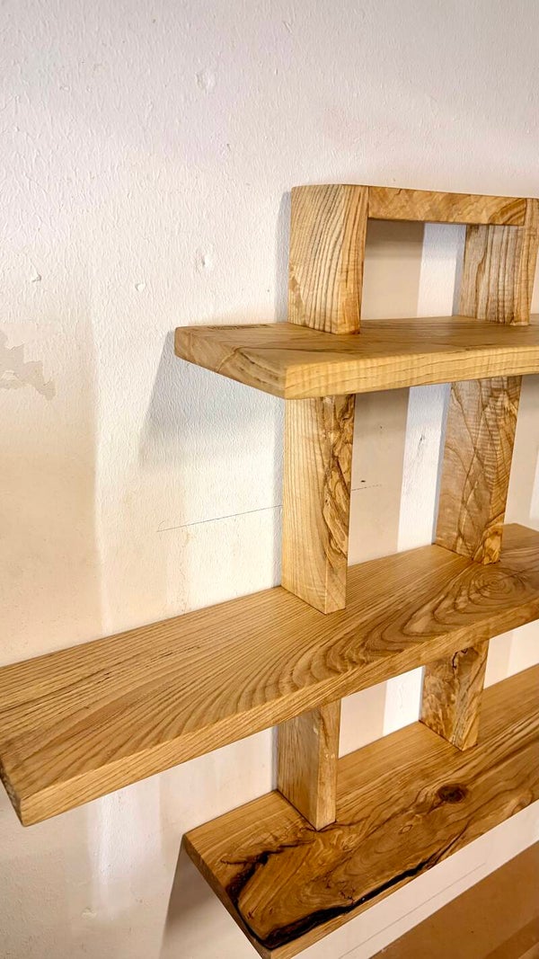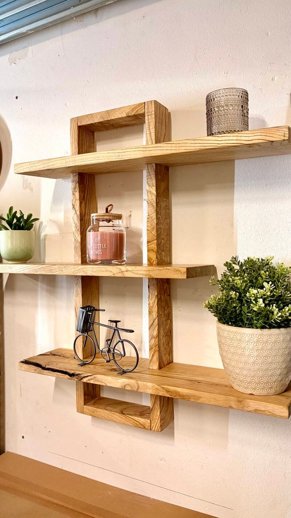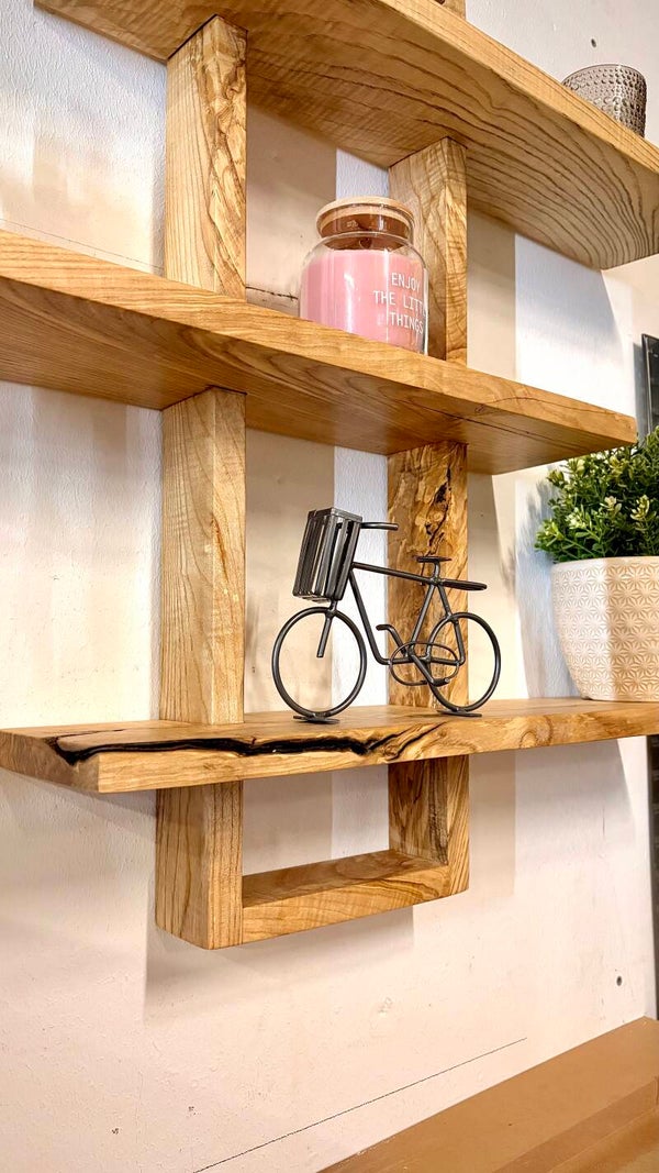 Dieses handgefertigte Wandregal aus massiver Esche ist ein echtes Highlight für deine Wand. Mit seiner großzügigen Größe und den mehreren Ebenen bietet es nicht nur viel Platz für Dekoration, sondern wird selbst zum zentralen Blickfang im Raum.