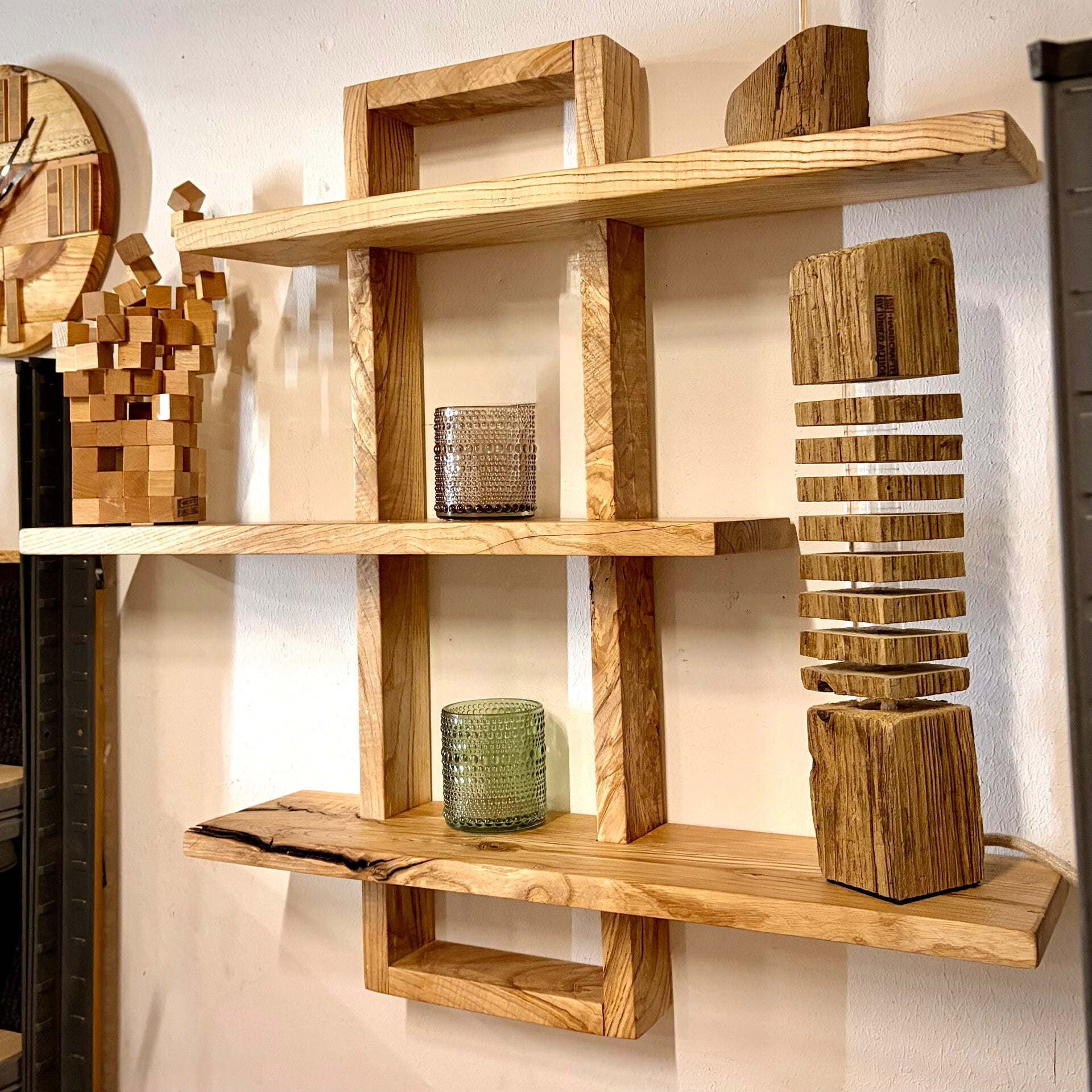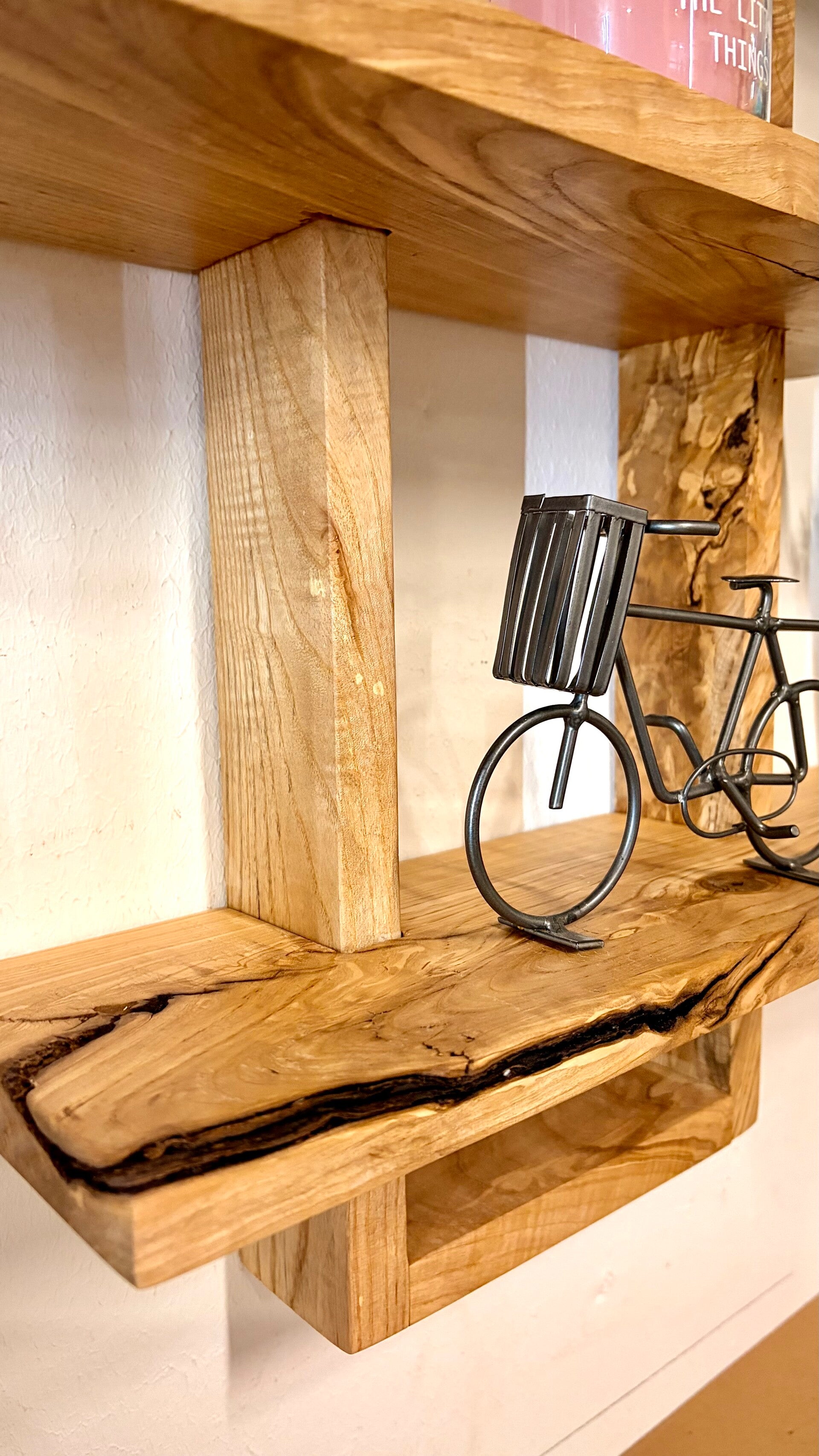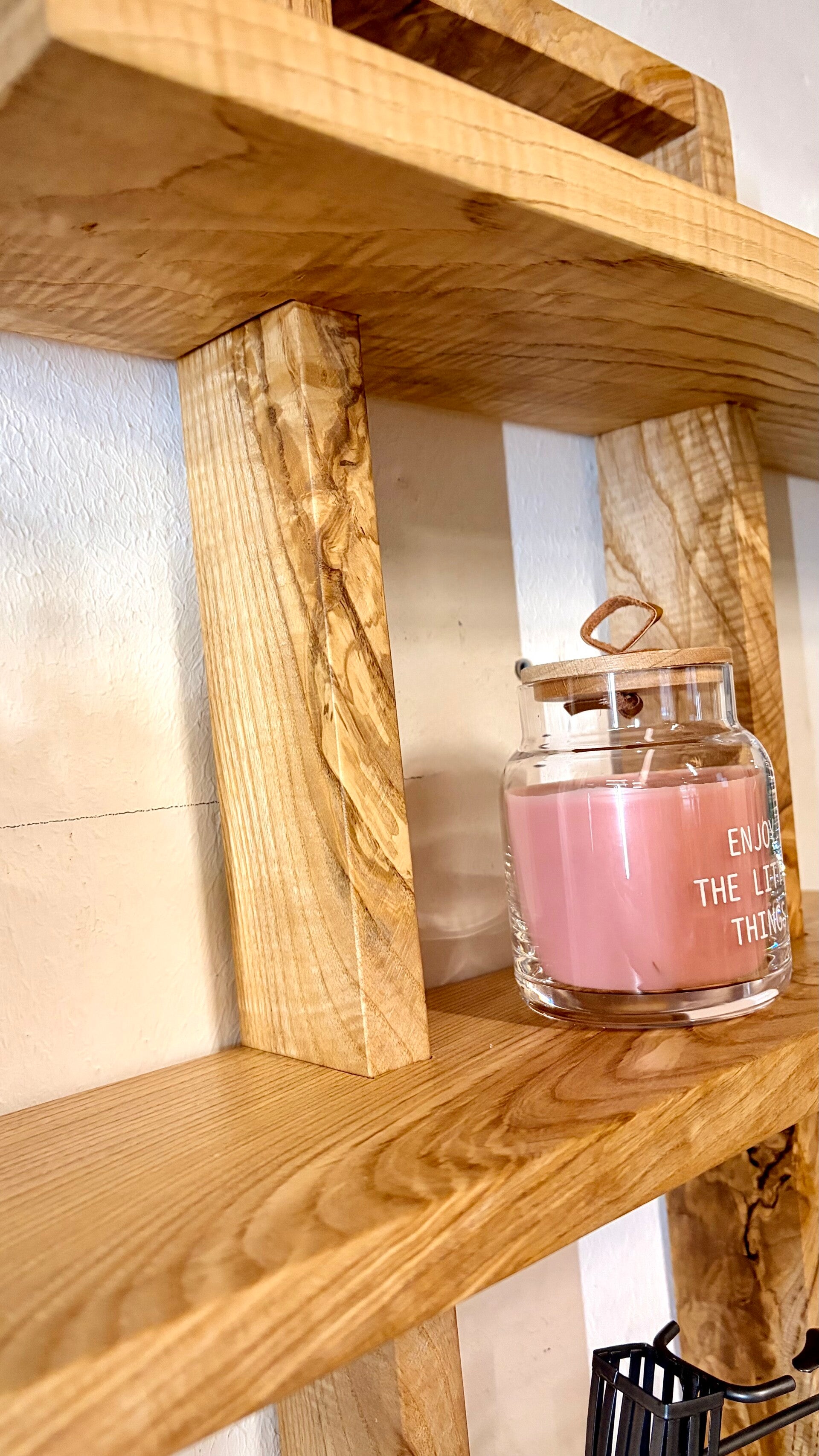 Dieses handgefertigte Wandregal aus massiver Esche ist ein echtes Highlight für deine Wand. Mit seiner großzügigen Größe und den mehreren Ebenen bietet es nicht nur viel Platz für Dekoration, sondern wird selbst zum zentralen Blickfang im Raum.