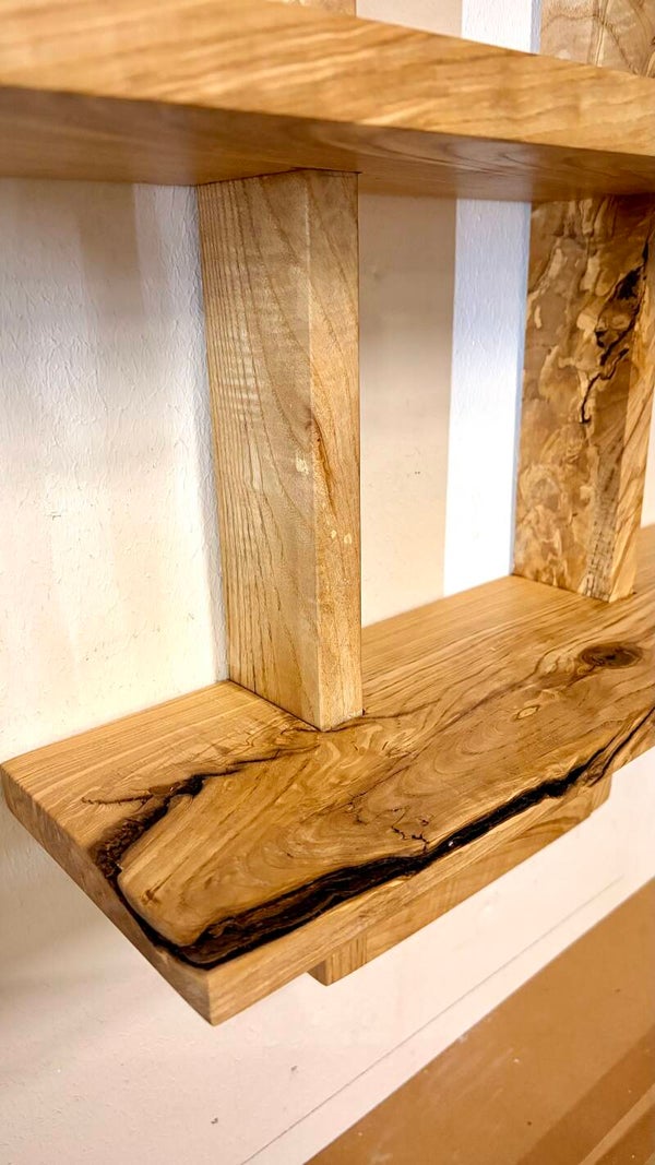 Wandregal aus Esche – großes Massivholz Regal, handgefertigt