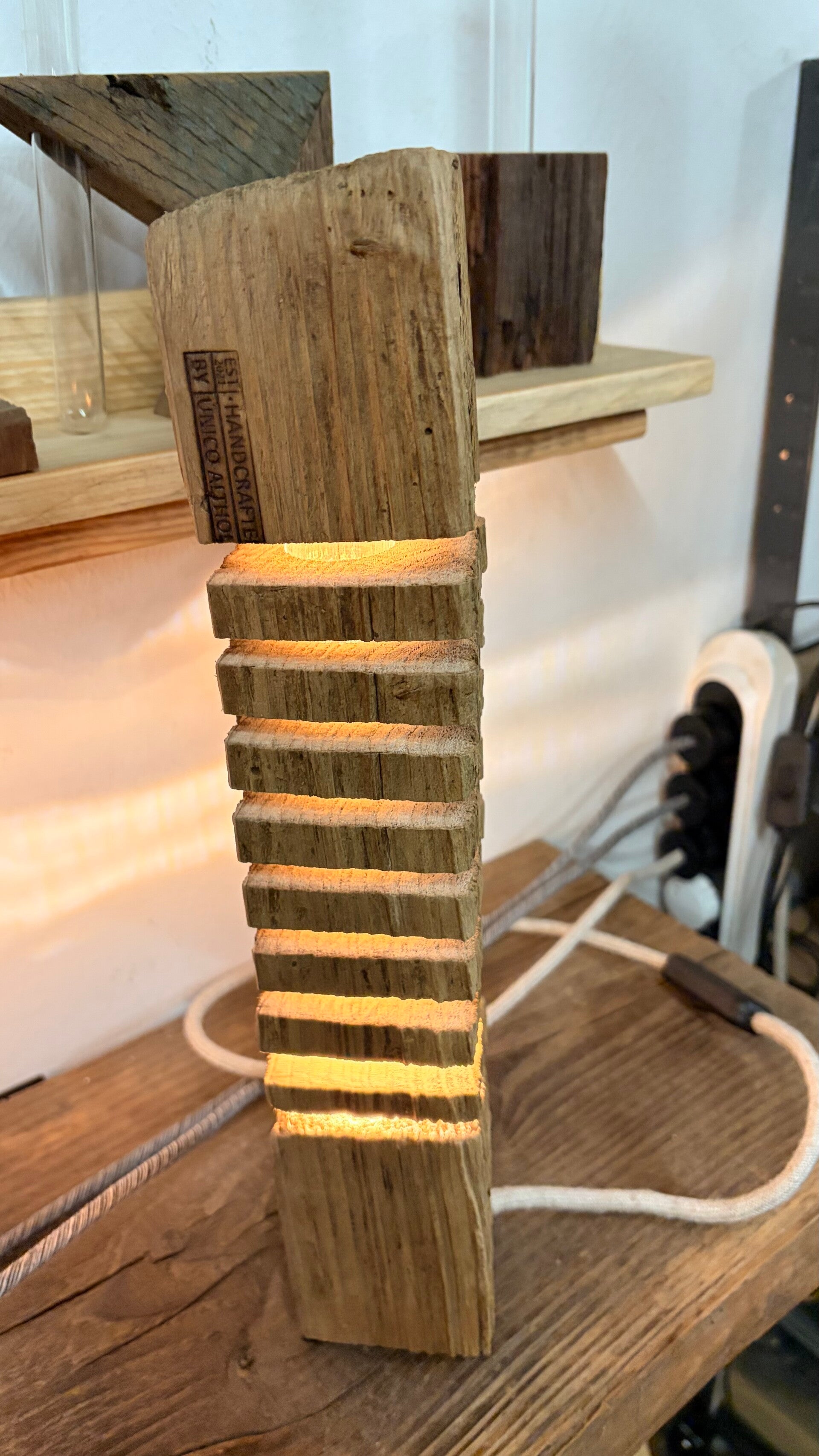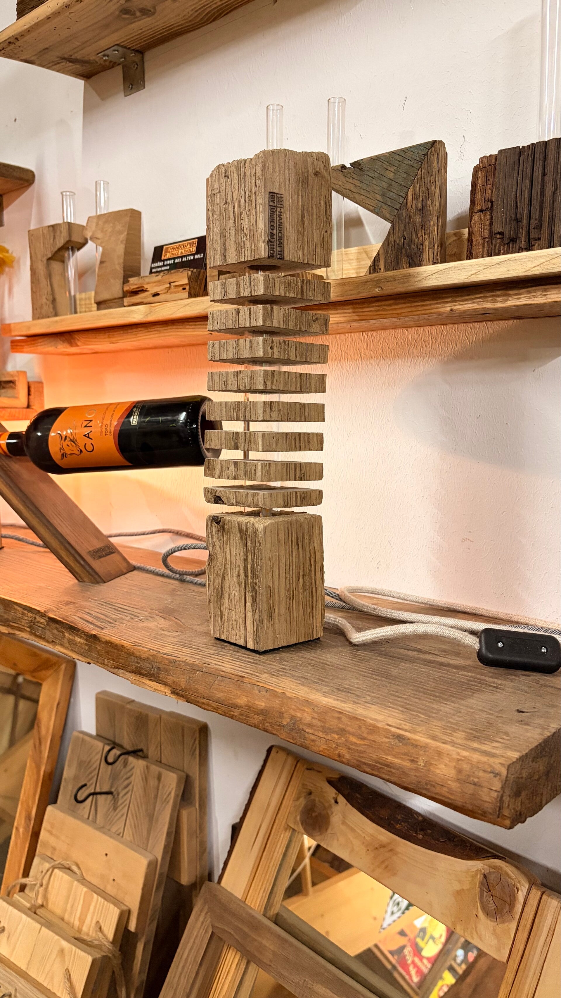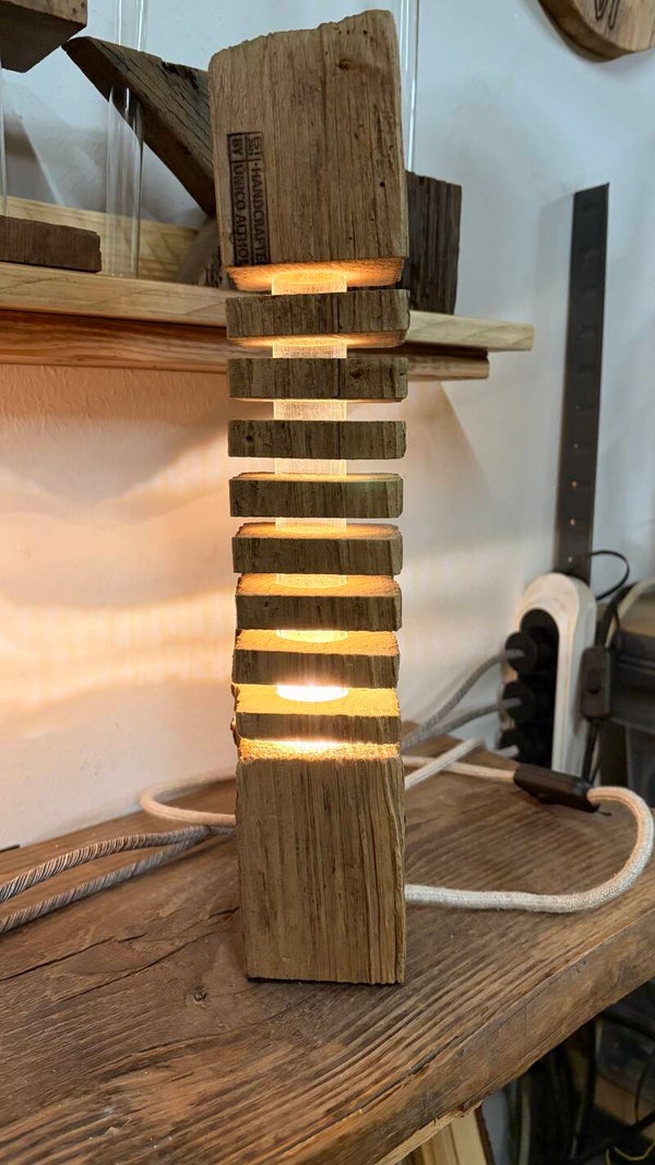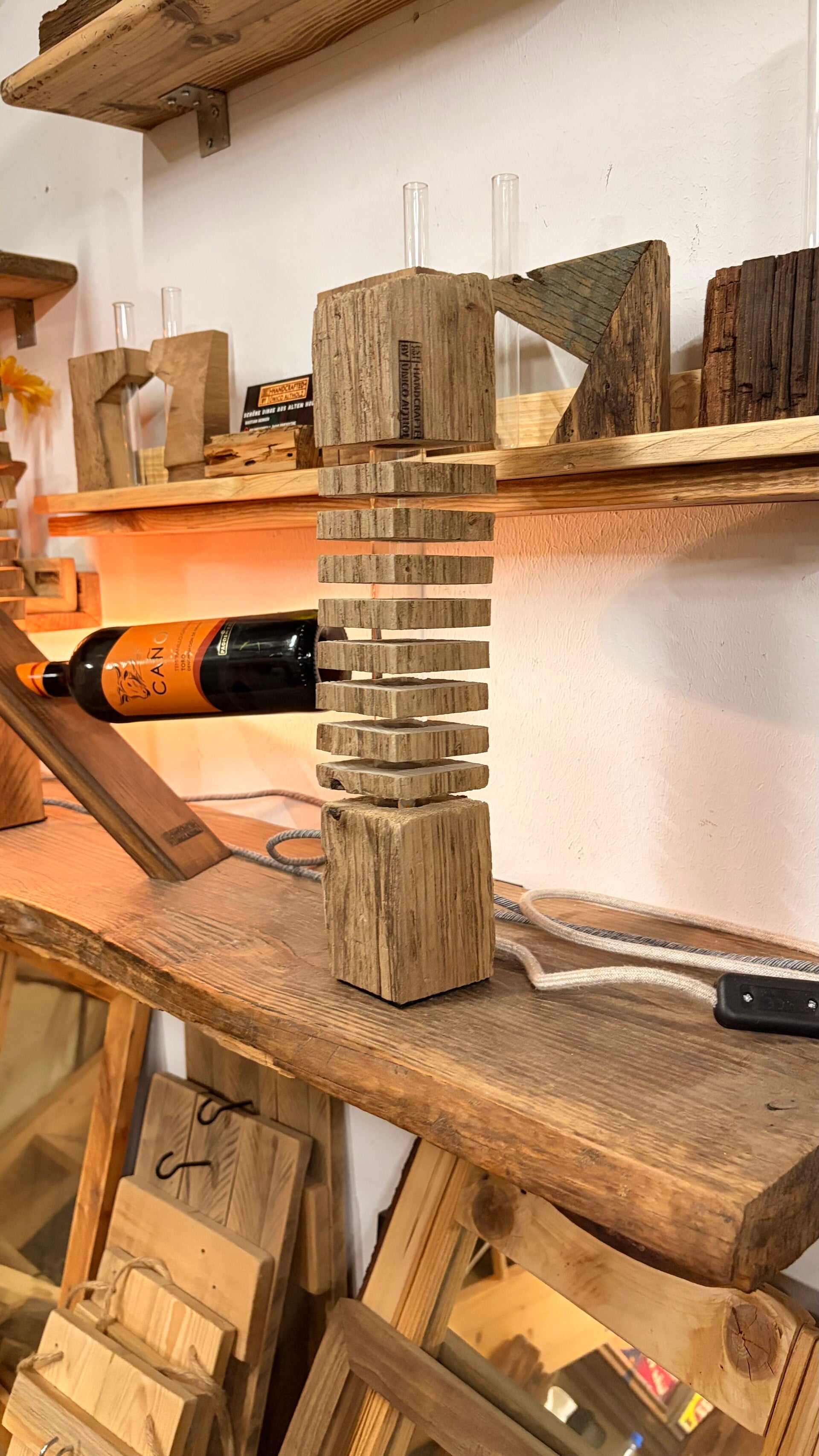Holzlampe aus Altholz – handgefertigte Tischlampe mit LED